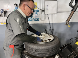 ![]() タイヤ交換の様子です。 |